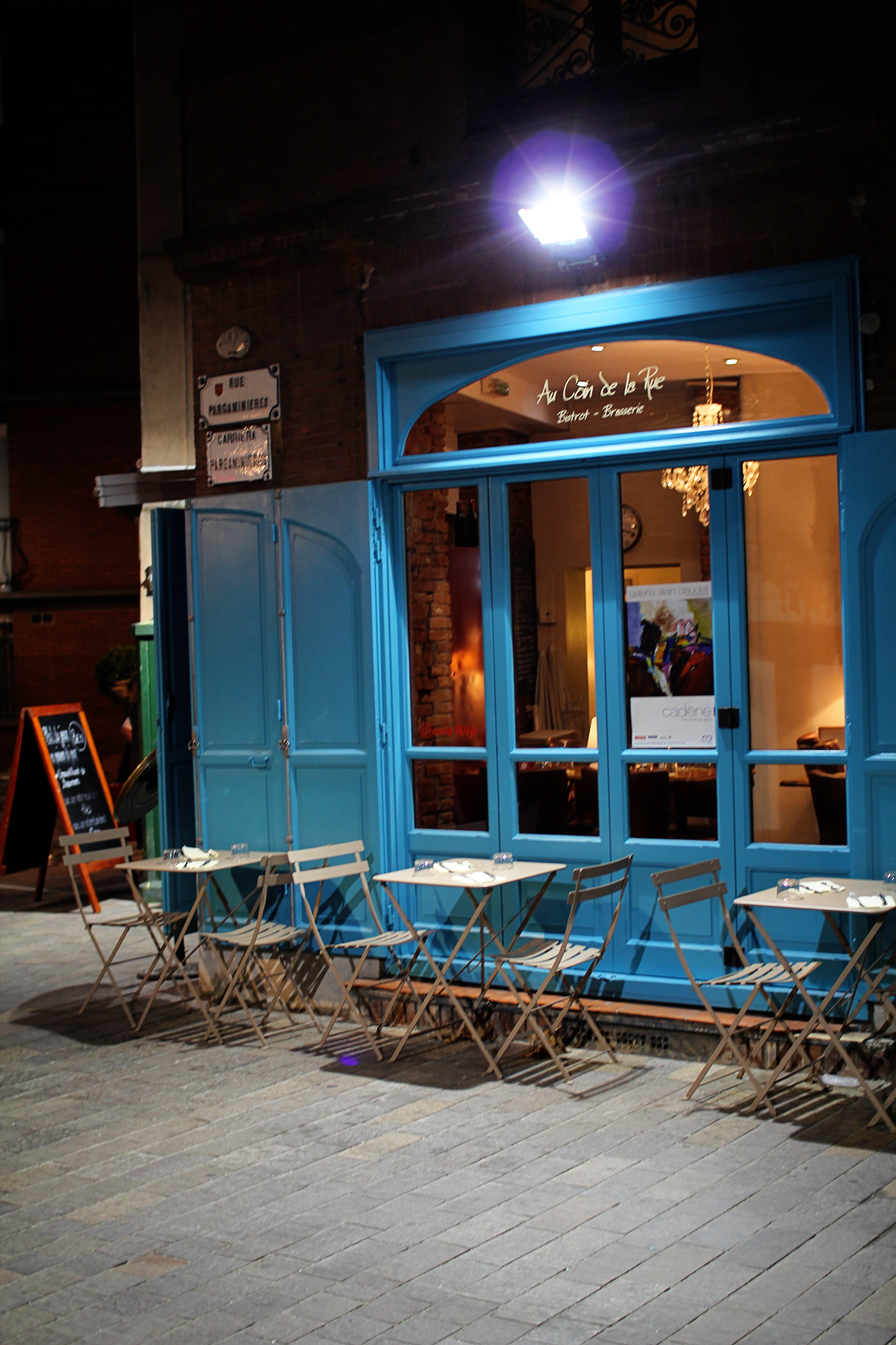 empty blue tables chair light toulouse France Romantic empty blue tables chair light toulouse France Romantic cityr11.jpg Cafe in Evening