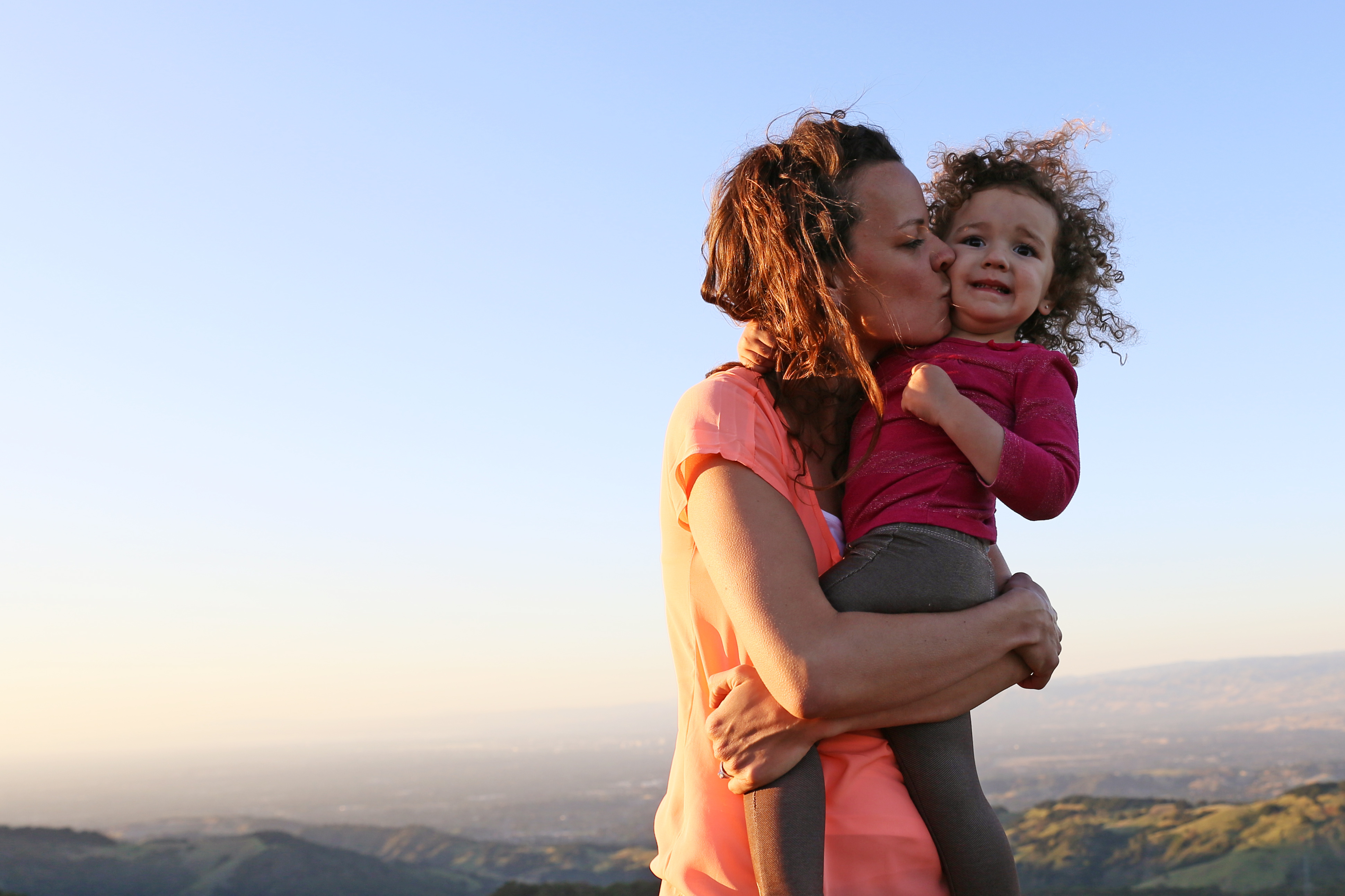 daisy vicky kiss sunset love concern worry wind brown hair mother hug tight hold joy