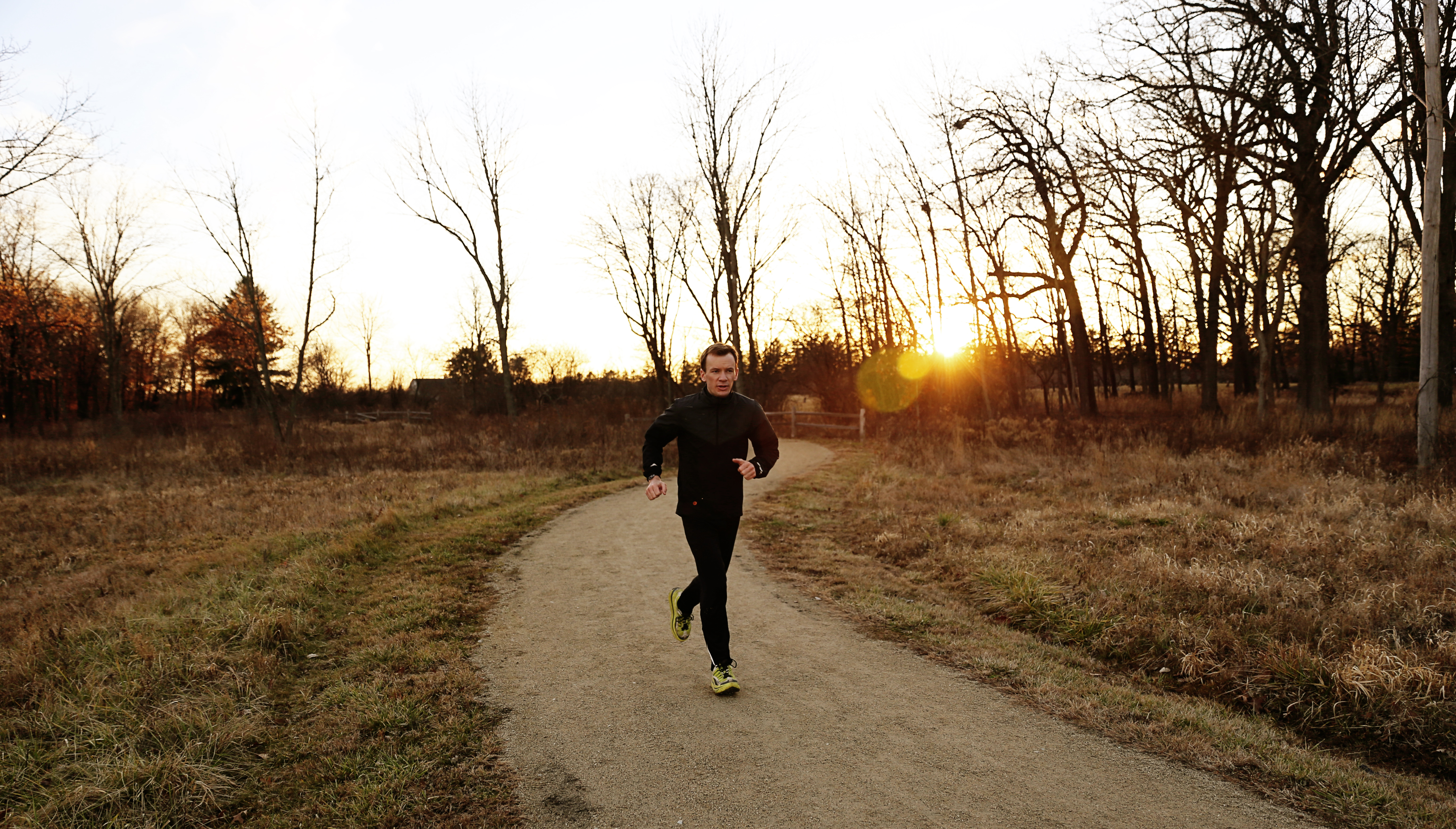 runner evening chicago fall autumn leaves cool sunset strong running jog chicago libertyville david
